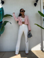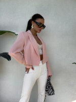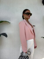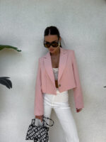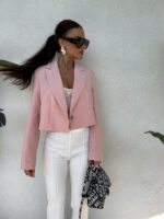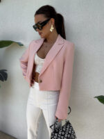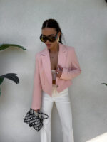 Marynarka o krótkim kroju, gładkie wykończenie. Marynarka posiada podszewkę, zapięcie regulowane przy pomocy guzika.