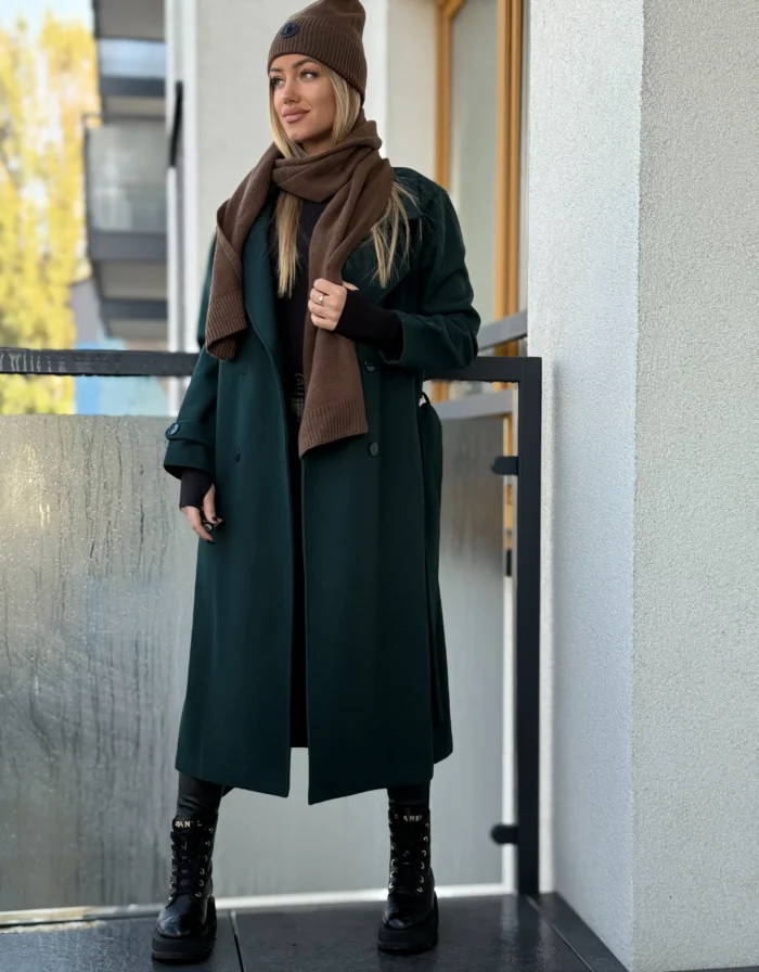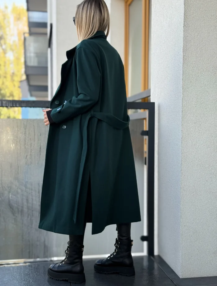 Płaszcz klasyczny MARINA-Butelkowa zieleń