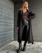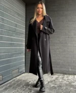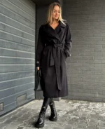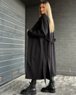 Długi płaszcz o ponadczasowym fasonie, który sprawia, że elegancja staje się nieodłącznym elementem codzienności. Model jest lekko oversizowy przez co wygodny w codziennym noszeniu, posiada rozcięcia po bokach na dole oraz kieszenie. Idealne dopełnienie dla każdej kobiety, która ceni sobie subtelne, lecz wyraziste akcenty w swojej garderobie.