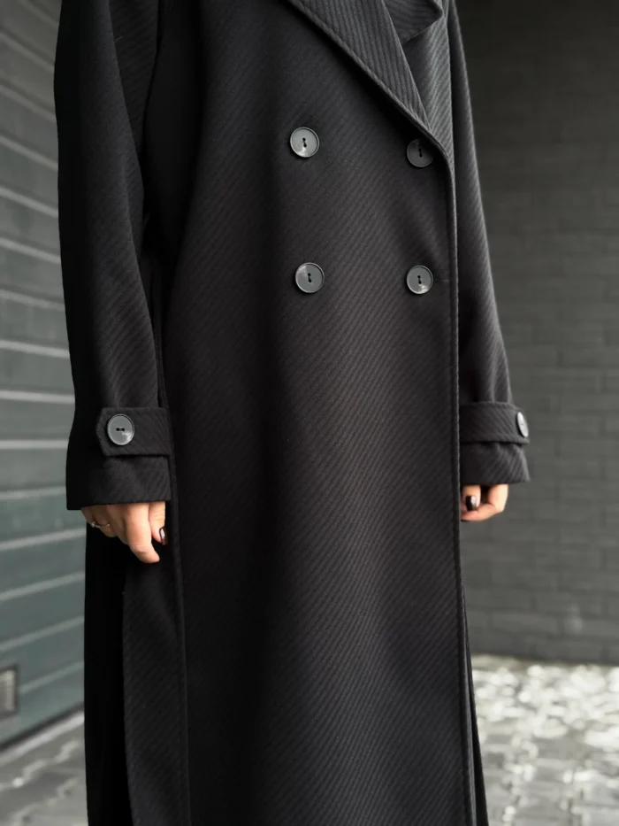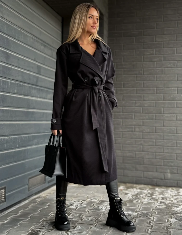 Długi płaszcz o ponadczasowym fasonie, który sprawia, że elegancja staje się nieodłącznym elementem codzienności. Model jest lekko oversizowy przez co wygodny w codziennym noszeniu, posiada rozcięcia po bokach na dole oraz kieszenie. Idealne dopełnienie dla każdej kobiety, która ceni sobie subtelne, lecz wyraziste akcenty w swojej garderobie.