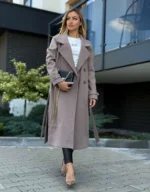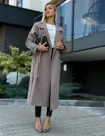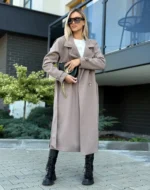 Długi płaszcz o ponadczasowym fasonie, który sprawia, że elegancja staje się nieodłącznym elementem codzienności. Model jest lekko oversizowy przez co wygodny w codziennym noszeniu, posiada rozcięcia po bokach na dole oraz kieszenie. Idealne dopełnienie dla każdej kobiety, która ceni sobie subtelne, lecz wyraziste akcenty w swojej garderobie.