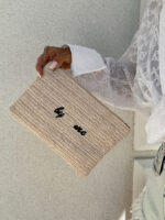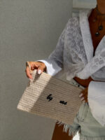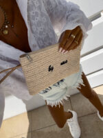 Dodaj odrobinę naturalnego uroku do swojej garderoby, dzięki tej stylowej saszetce. Wykonana z plecionego materiału o subtelnym wzorze jodełki, idealnie sprawdzi się jako elegancka kopertówka na drobne akcesoria, kosmetyki czy dokumenty. Zapinana na suwak, dodatkiem jest skórzany pasek na nadgarstek dla wygodnego noszenia. Na przedniej stronie logowany haft. Kompaktowy rozmiar, idealny do torebki lub noszenia solo. Idealna zarówno na co dzień, jak i na wakacyjne wyjazdy – łączy w sobie funkcjonalność i styl.