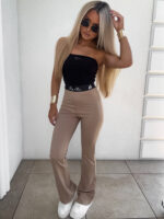 Spodnie typu dzwony. Efektownym dodatkiem są logowane gumy.