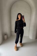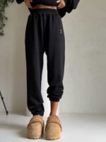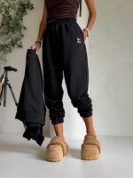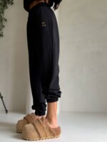 Spodnie dresowe – dopasowane, z elastycznym pasem w talii i ściągaczami na dole nogawek. Ich krój podkreśla sylwetkę, zachowując jednocześnie pełną swobodę ruchów.