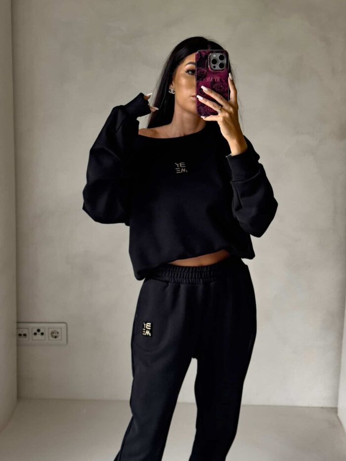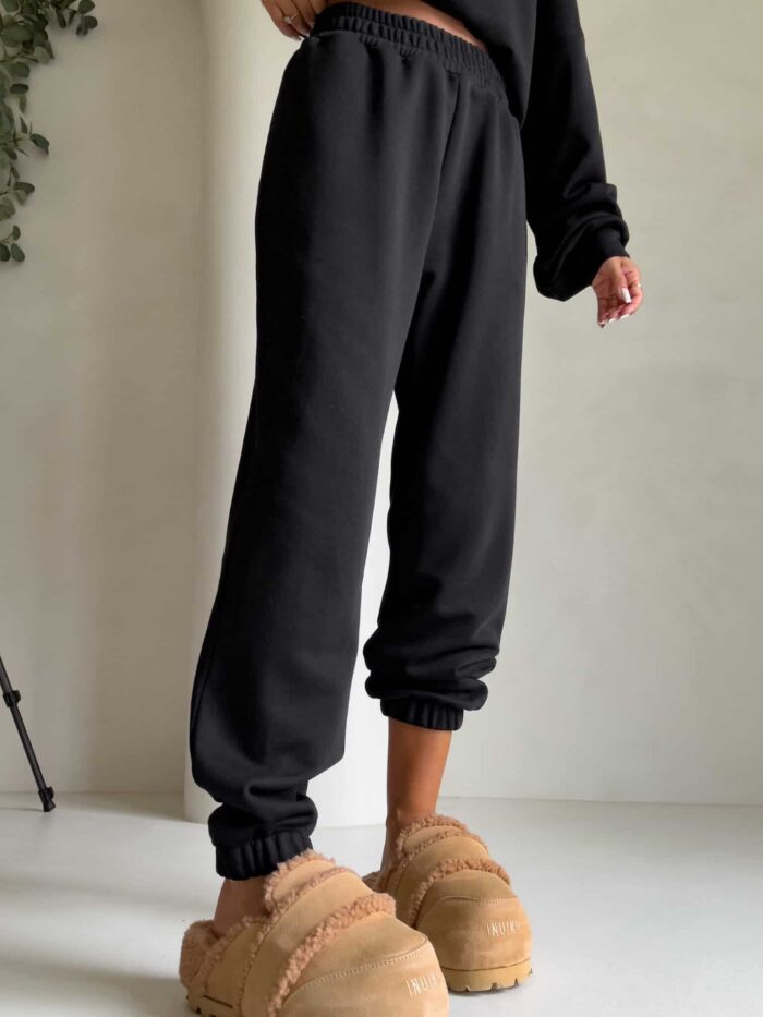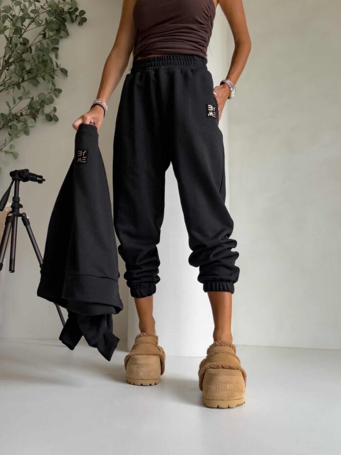 Spodnie dresowe – dopasowane, z elastycznym pasem w talii i ściągaczami na dole nogawek. Ich krój podkreśla sylwetkę, zachowując jednocześnie pełną swobodę ruchów.