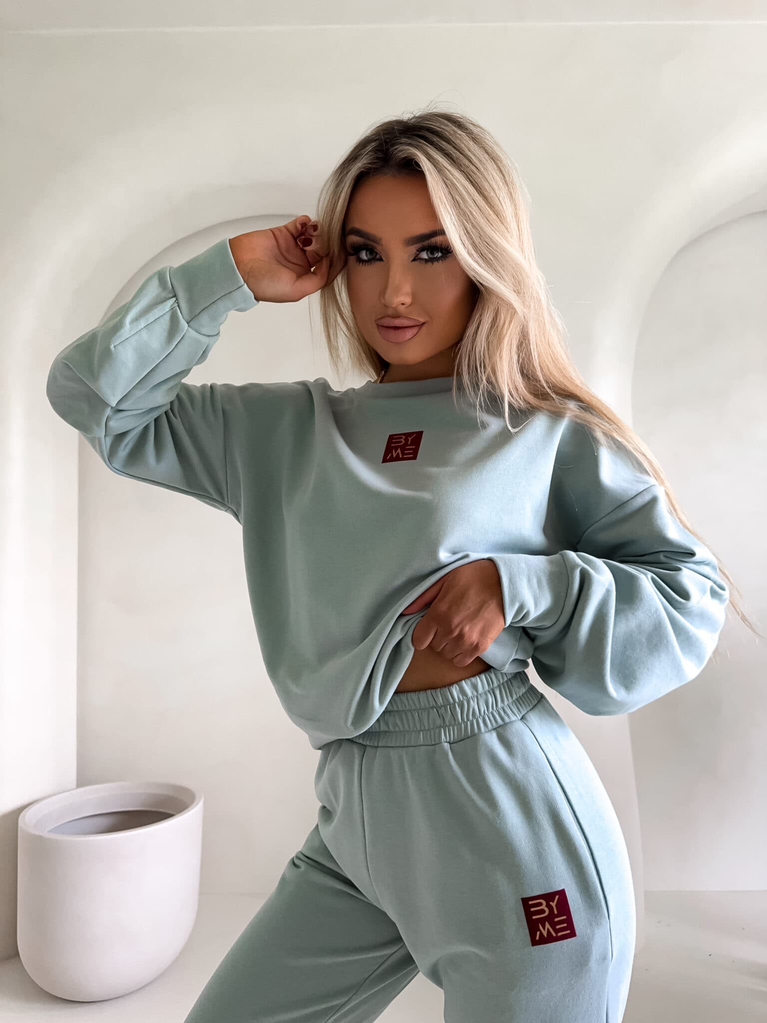 Spodnie dresowe – dopasowane, z elastycznym pasem w talii i ściągaczami na dole nogawek. Ich krój podkreśla sylwetkę, zachowując jednocześnie pełną swobodę ruchów.