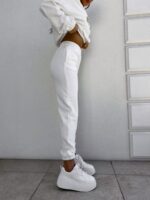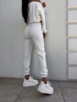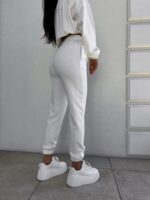 Spodnie dresowe – dopasowane, z elastycznym pasem w talii i ściągaczami na dole nogawek. Ich krój podkreśla sylwetkę, zachowując jednocześnie pełną swobodę ruchów.