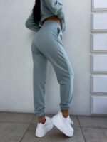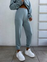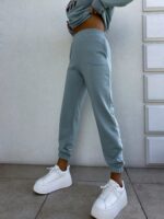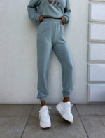 Spodnie dresowe – dopasowane, z elastycznym pasem w talii i ściągaczami na dole nogawek. Ich krój podkreśla sylwetkę, zachowując jednocześnie pełną swobodę ruchów.