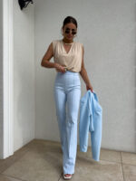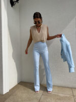 Spodnie DZWONY z luźnymi, rozszerzającymi się ku dołowi nogawkami z pionowym przeszyciem.
