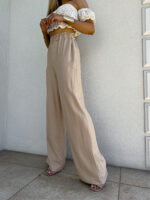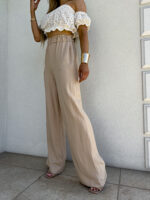 Spodnie Lujo o luźnym kroju, zaprojektowane z myślą o komforcie i stylu. Posiadają gumkę w pasie, która zapewnia idealne dopasowanie oraz dwie praktyczne kieszenie, które dodają funkcjonalności. Wykonane z wysokiej jakości materiałów, są idealne na co dzień, do pracy lub na spotkania z przyjaciółmi. Te spodnie łączą w sobie wygodę i modny wygląd, idealne do różnych stylizacji.