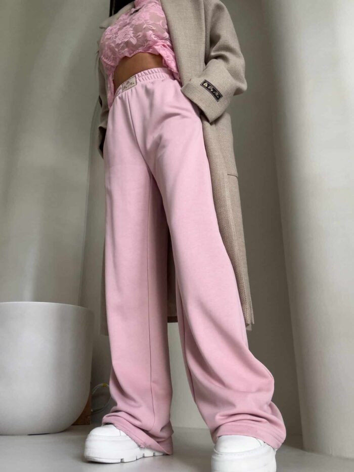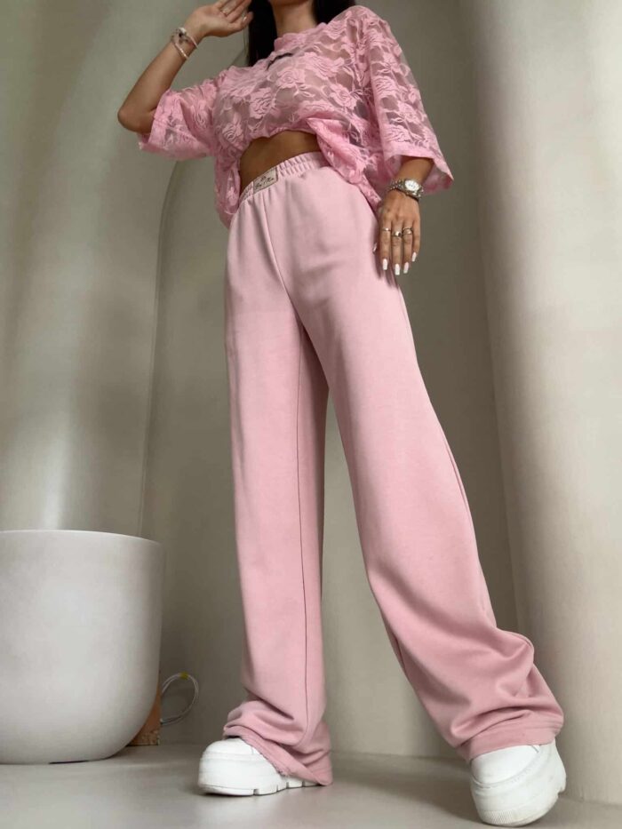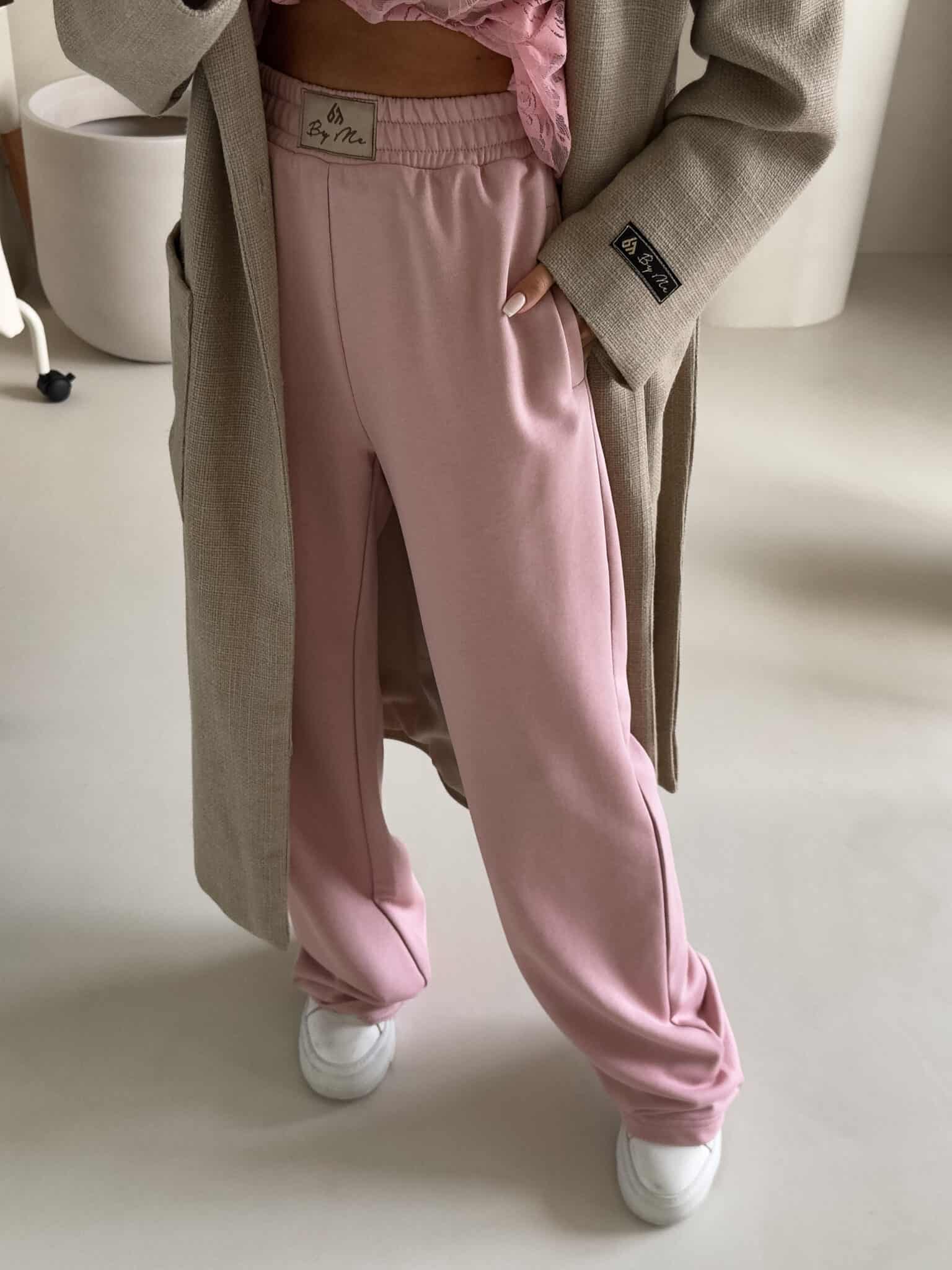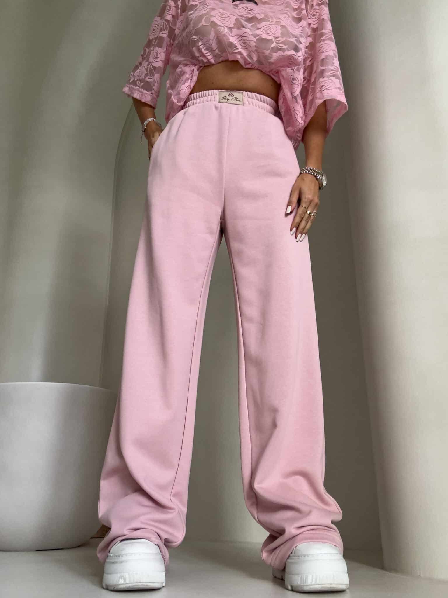 Luźne spodnie dresowe z szerokimi nogawkami to idealne połączenie komfortu i swobodnego stylu. Wykonane z miękkiego materiału, mają prosty krój i szerokie nogawki, które zapewniają maksymalną wygodę i pełną swobodę ruchów. W pasie znajduje się elastyczna gumka, dzięki której spodnie dopasowują się do sylwetki, nie uciskając. Dodatkowym detalem jest subtelna metka z napisem „By Me” przyszyta centralnie na gumce, podkreślająca unikatowy charakter produktu.