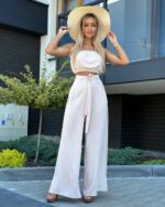 Przepiękne letnie spodnie z rozcięciami na bokach. Lekkie zwiewne, idealne na każdą figurę. Spodnie są wiązane, regulowane. W środku posiadają guziczek. Polski producent