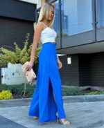 Przepiękne letnie spodnie z rozcięciami na bokach. Lekkie zwiewne, idealne na każdą figurę. Spodnie są wiązane, regulowane. W środku posiadają guziczek. Polski producent