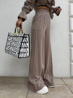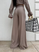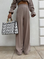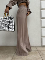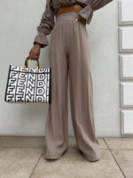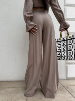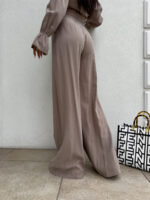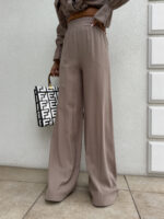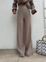 Spodnie SZWEDY to luźne spodnie z wysokim stanem. Spodnie mają szerokie nogawki i są wykonane z lekkiego, lejącego się materiału, który nadaje im swobodny i wygodny charakter. W pasie znajduje się elastyczna gumka, co dodatkowo zwiększa komfort noszenia. Dodatkowo zastosowano praktyczny zamek, dzięki któremu zakładanie i zdejmowanie spodni jest jeszcze łatwiejsze.