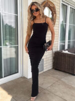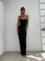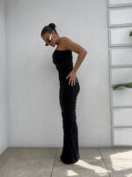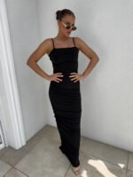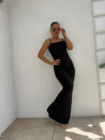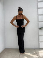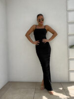 Sukienka Aura to elegancka, dopasowana kreacja, wykonana z lekkiego materiału, który pięknie podkreśla sylwetkę. Model ma długość maxi z rozcięciem z tyłu, co dodaje subtelnej zmysłowości i swobody ruchów. Sukienka posiada cienkie ramiączka i prosty, minimalistyczny krój, dzięki czemu prezentuje się bardzo stylowo i nowocześnie. To idealna propozycja na letnie przyjęcie, randkę lub wyjątkowy wieczór.
