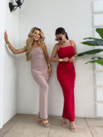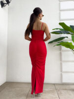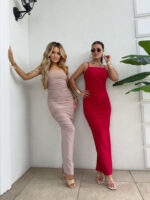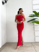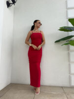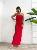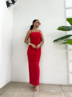 Sukienka Aura to elegancka, dopasowana kreacja, wykonana z lekkiego materiału, który pięknie podkreśla sylwetkę. Model ma długość maxi z rozcięciem z tyłu, co dodaje subtelnej zmysłowości i swobody ruchów. Sukienka posiada cienkie ramiączka i prosty, minimalistyczny krój, dzięki czemu prezentuje się bardzo stylowo i nowocześnie. To idealna propozycja na letnie przyjęcie, randkę lub wyjątkowy wieczór.