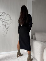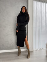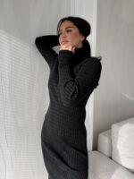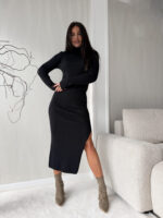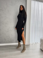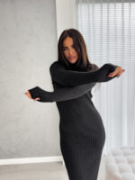 Klasyczna sukienka z golfem, na długi rękaw. Długość maxi. Wykonana z najwyższej jakości przędzy materiału prążkowanego. Bardzo ciągliwa.
