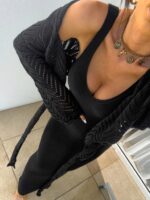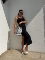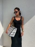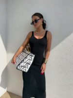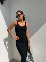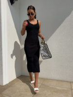 Sukienka na ramiączkach o długości maxi, idealna na gorące dni, zapewnia komfort i swobodę ruchów. Sukienka ma subtelne rozcięcie z tyłu, które dodaje jej elegancji i sprawia, że staje się jeszcze bardziej zmysłowa. Prosty, ale efektowny krój świetnie podkreśla sylwetkę, a ramiączka nadają całości lekkości. Doskonała na letnie wieczory, plażowe spacery czy imprezy w ciepłych klimatach.