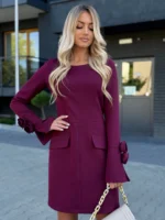 Na przodzie modne patki.Fason pięknie podkreśla kobiecą sylwetkę i dodaje elegancji. Sukienka idealna na wszelkiego typu imprezy okolicznościowe, spotkani w pracy, wieczorne wyjście.