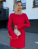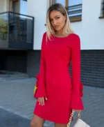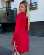 Na przodzie modne patki.Fason pięknie podkreśla kobiecą sylwetkę i dodaje elegancji. Sukienka idealna na wszelkiego typu imprezy okolicznościowe, spotkani w pracy, wieczorne wyjście.