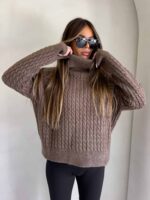 Sweter z golfem, wkładany przez głowę, na długi rękaw z ciekawym splotem. Bardzo ciepły.