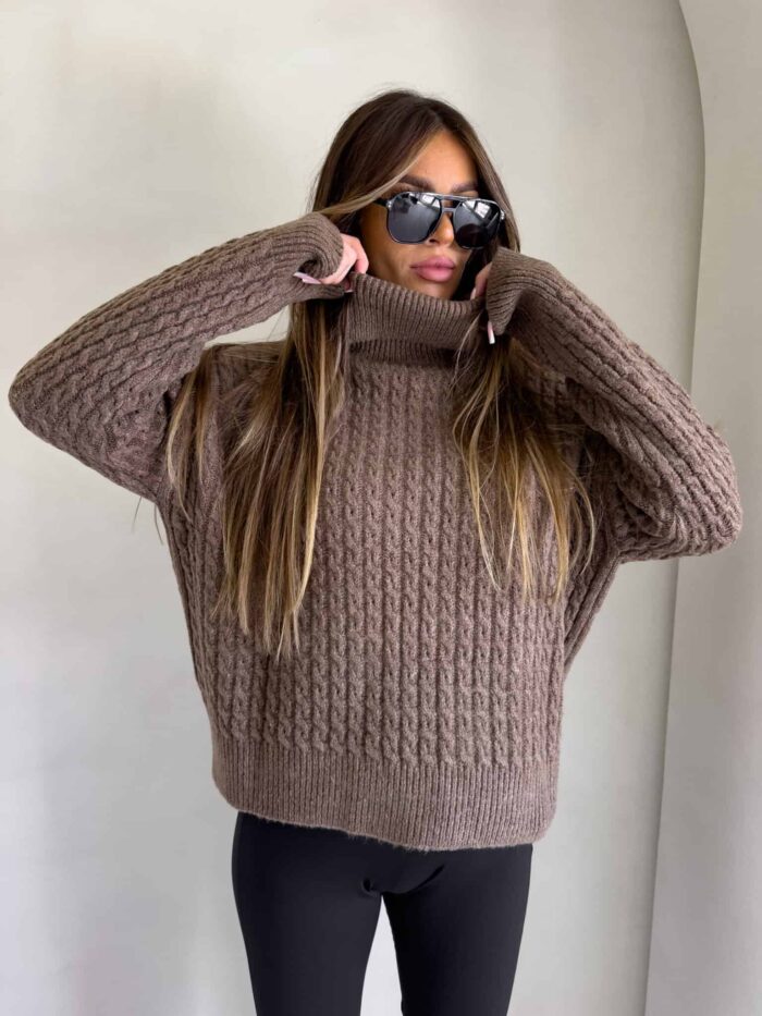 Sweter golf INKO – czekoladowy
