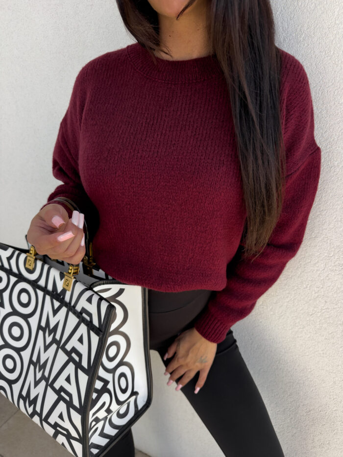 Sweterek Nerys zakładany przez głowę ze ściągaczem przy rękawie i w pasie. Miły, niegryzący materiał.