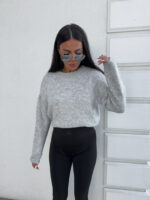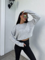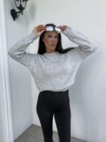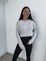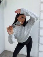 Sweterek Nerys zakładany przez głowę ze ściągaczem przy rękawie i w pasie. Miły, niegryzący materiał.