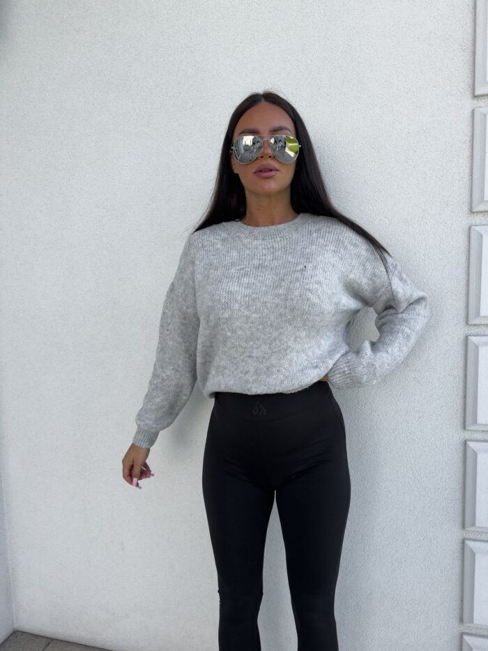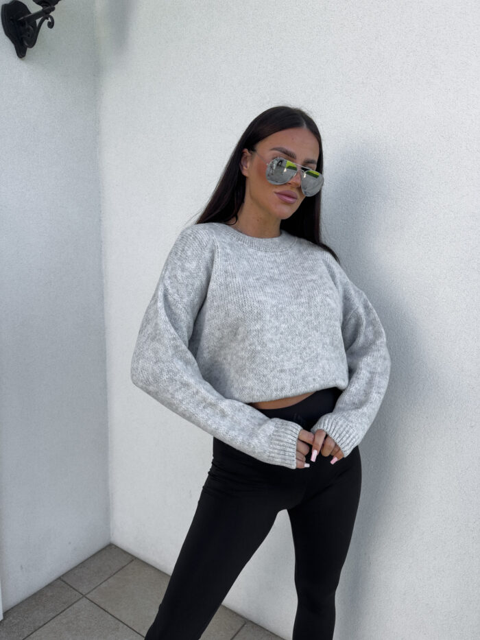 Sweterek Nerys zakładany przez głowę ze ściągaczem przy rękawie i w pasie. Miły, niegryzący materiał.