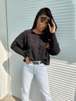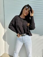 Sweter Paris wkładany przez głowę. Jego design pozwoli na dopełnienie wielu stylizacji. Na rękawach dłuższe ściągacze. Wytłaczane literki.