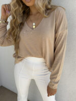 Sweter Volcano wykonany z bardzo miłej w dotyku przędzy z dodatkiem kaszmiru. Wkładany przez głowę. Jego design pozwoli na dopełnienie wielu stylizacji. Ten model sprawdzi się doskonale w połączeniu z ulubioną parą spodni czy spódnicą.