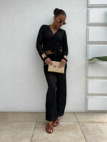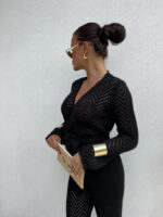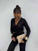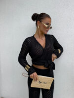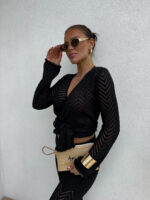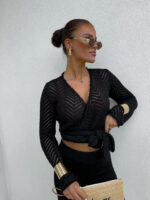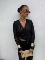 Dodaj swojej stylizacji lekkości i boho uroku dzięki temu wiązanemu sweterkowi! Model wykonany z miękkiej, przyjemnej w dotyku dzianiny, doskonale układa się na sylwetce. Z przodu wiązanie umożliwia regulację dopasowania, a subtelne, króciutkie frędzelki przy wykończeniu nadają całości swobodnego, kobiecego charakteru. Idealny do jeansów, spódnic czy sukienek — sprawdzi się zarówno na co dzień, jak i na wyjątkowe okazje.