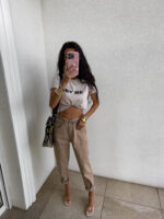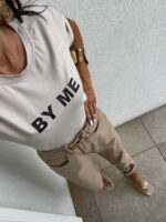 T-shirt Glamorous posiada przyszyty oryginalnie mankiecik. Plisa pod szyją, z tyłu w środku wykończona potnikiem. Wykonany z bawełny mocno ciągliwej.