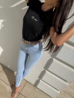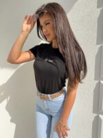 T-shirt Mohito posiada przyszyty oryginalnie mankiecik. Plisa pod szyją, z tyłu w środku wykończona potnikiem. Wykonany z bawełny mocno ciągliwej.