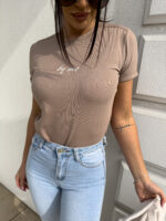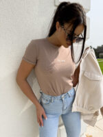 T-shirt Mohito posiada przyszyty oryginalnie mankiecik. Plisa pod szyją, z tyłu w środku wykończona potnikiem. Wykonany z bawełny mocno ciągliwej.