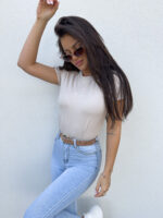T-shirt Mohito posiada przyszyty oryginalnie mankiecik. Plisa pod szyją, z tyłu w środku wykończona potnikiem. Wykonany z bawełny mocno ciągliwej.