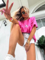 T-shirt Monette to połączenie nowoczesnego stylu z komfortem na co dzień. Wykonany z wysokiej jakości bawełny, która zapewnia trwałość i przyjemność noszenia. Charakteryzuje się efektem dekatyzacji. Delikatny nadruk na środku klatki piersiowej dodaje subtelnego, designerskiego akcentu. Model posiada nieco dłuższe rękawy, które podkreślają jego nowoczesny fason.