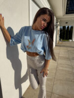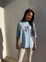 T-shirt MOTYL z wysokiej jakości bawełny, na środku przepiękny nadrukowany motyl z cekinami. Krój lekko w literkę „A” oraz dłuższe rękawy.