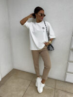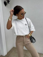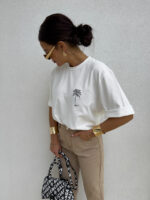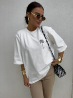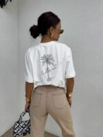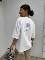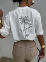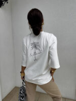 T-shirt PALMS z wysokiej jakości bawełny, posiada dłuższe rękawy. Z przodu koszulki znajduje się subtelny haft przedstawiający palmę, natomiast z tyłu – większy haft z motywem palmy oraz napisem „LA DOLCE VITA”, co w tłumaczeniu z języka włoskiego oznacza „słodkie życie”. To stylowy detal, który przywołuje na myśl letnie dni, relaks i wolność. Idealna propozycja na wakacyjne wypady, spacer po plaży lub po prostu – gdy chcesz poczuć klimat lata niezależnie od pory roku.