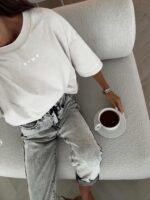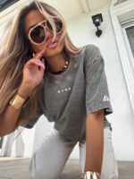 T-shirt Play to połączenie nowoczesnego stylu z komfortem na co dzień. Wykonany z wysokiej jakości bawełny, która zapewnia trwałość i przyjemność noszenia. Charakteryzuje się efektem dekatyzacji. Delikatny nadruk na środku klatki piersiowej oraz na jednym rękawie dodaje subtelnego, designerskiego akcentu. Model posiada nieco dłuższe rękawy, które podkreślają jego nowoczesny fason.