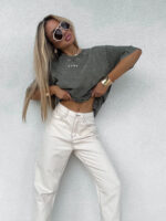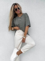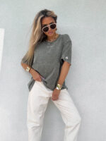 T-shirt Play to połączenie nowoczesnego stylu z komfortem na co dzień. Wykonany z wysokiej jakości bawełny, która zapewnia trwałość i przyjemność noszenia. Charakteryzuje się efektem dekatyzacji. Delikatny nadruk na środku klatki piersiowej oraz na jednym rękawie dodaje subtelnego, designerskiego akcentu. Model posiada nieco dłuższe rękawy, które podkreślają jego nowoczesny fason.