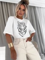 Wygoda spotyka styl – t-shirt Tygrys to must-have w każdej nowoczesnej szafie. Wykonany z wysokiej jakości bawełny, zapewnia komfort noszenia przez cały dzień. Charakterystyczny nadruk na środku nadaje mu wyrazistego, streetwearowego charakteru. Luźny krój świetnie układa się na sylwetce i pasuje zarówno do jeansów, jak i do spódnicy czy dresów.