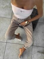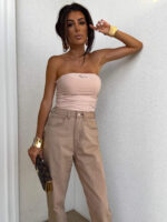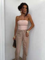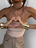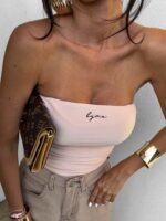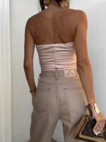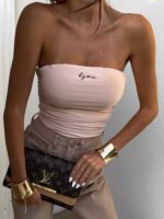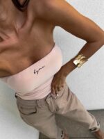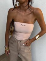 Top logowany bez ramiączek to idealna baza do wielu stylizacji – od codziennych po wieczorowe. Wykonany z elastycznego, idealnie dopasowującego się materiału, gwarantuje komfort noszenia i świetne dopasowanie do sylwetki. Top posiada podwójną warstwę materiału, co zapewnia lepsze krycie i trwałość, a subtelne marszczenia po bokach i z tyłu dodają mu charakteru i delikatnie modelują figurę. Uniwersalny krój sprawia, że będzie świetnie wyglądać zarówno solo, jak i w połączeniu z marynarką czy oversize’ową koszulą.
