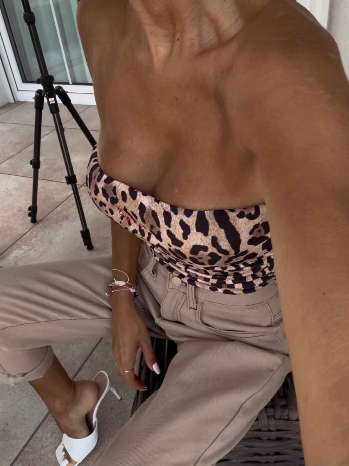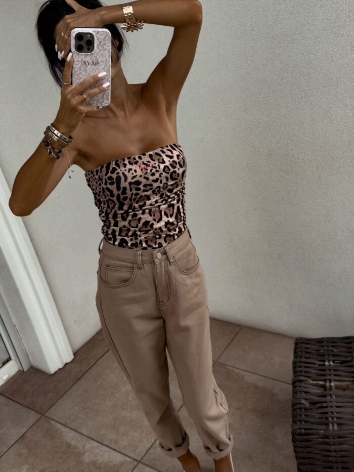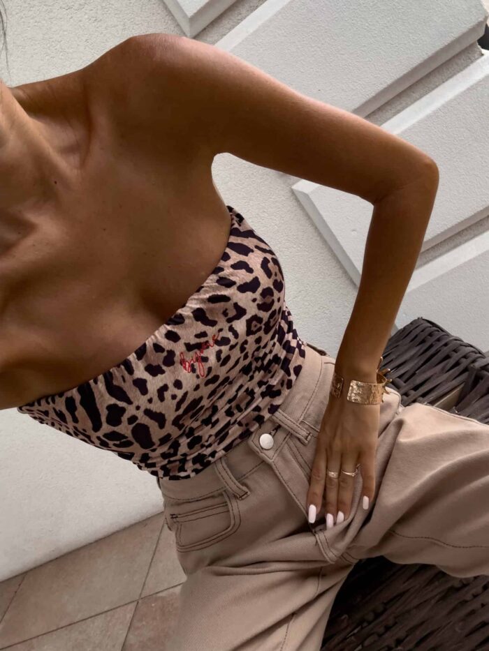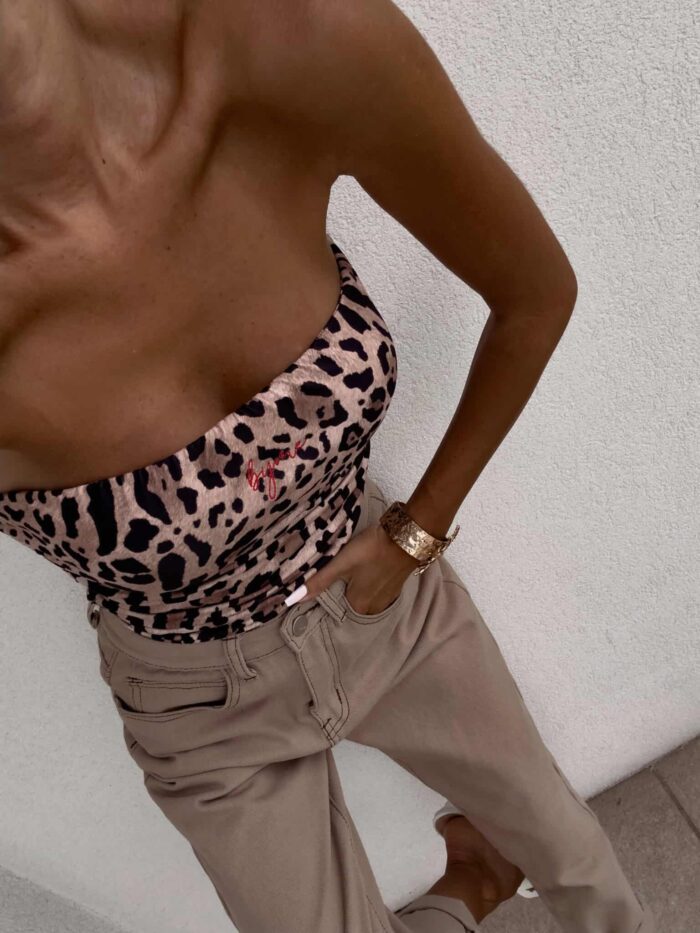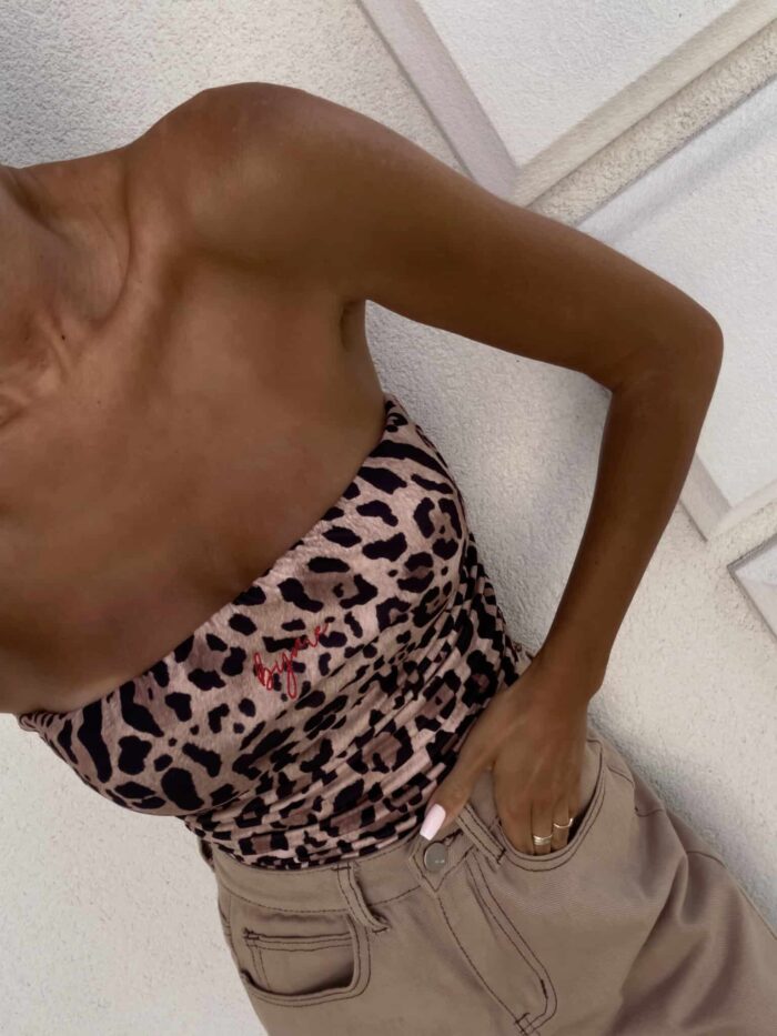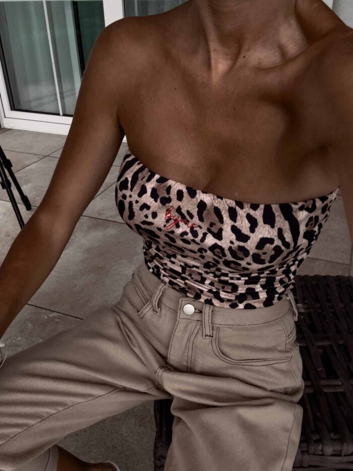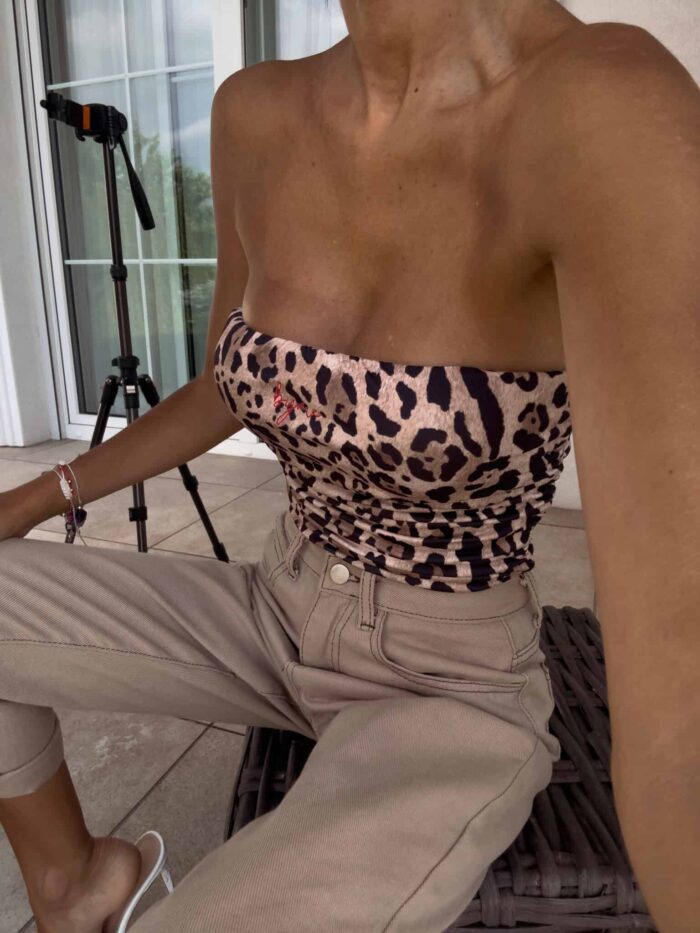 Top logowany bez ramiączek to idealna baza do wielu stylizacji – od codziennych po wieczorowe. Wykonany z elastycznego, idealnie dopasowującego się materiału, gwarantuje komfort noszenia i świetne dopasowanie do sylwetki. Top posiada podwójną warstwę materiału, co zapewnia lepsze krycie i trwałość, a subtelne marszczenia po bokach i z tyłu dodają mu charakteru i delikatnie modelują figurę. Uniwersalny krój sprawia, że będzie świetnie wyglądać zarówno solo, jak i w połączeniu z marynarką czy oversize’ową koszulą.