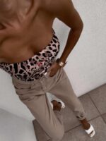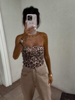 Top logowany bez ramiączek to idealna baza do wielu stylizacji – od codziennych po wieczorowe. Wykonany z elastycznego, idealnie dopasowującego się materiału, gwarantuje komfort noszenia i świetne dopasowanie do sylwetki. Top posiada podwójną warstwę materiału, co zapewnia lepsze krycie i trwałość, a subtelne marszczenia po bokach i z tyłu dodają mu charakteru i delikatnie modelują figurę. Uniwersalny krój sprawia, że będzie świetnie wyglądać zarówno solo, jak i w połączeniu z marynarką czy oversize’ową koszulą.