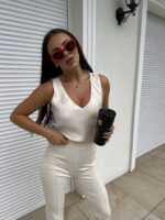 Top z szerszymi ramiączkami, dekolt V. Podwójny przód, dzięki temu nie prześwituje. Krój lekko w literkę „A”.