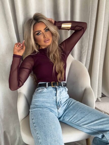 Bluzka SKIN IV transparent gładka – bordowa