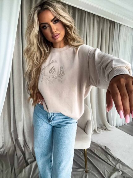 Dekatyzowana bluza QUEEN – jasny beż