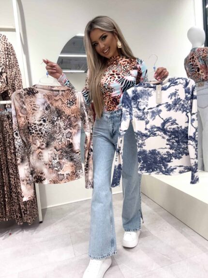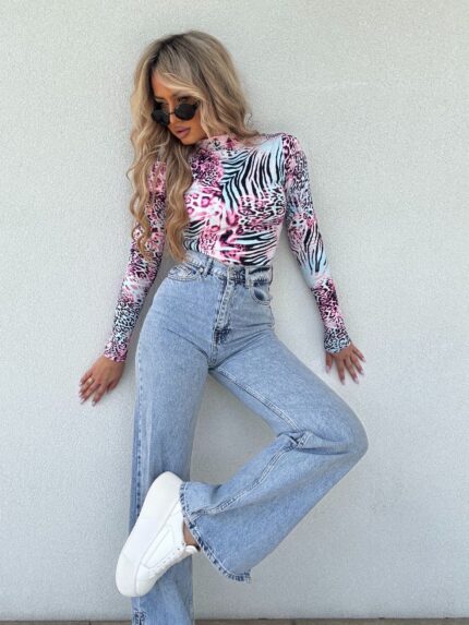 Bluzka SKIN print animal – miętowo-pomarańczowy